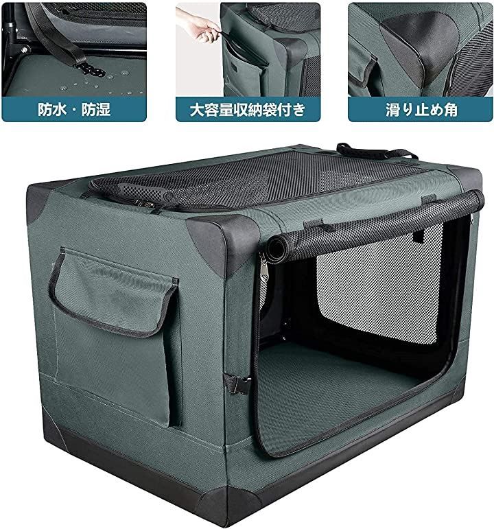 Totoro ball 折りたたみペットケージ 犬ケージ 犬用クレート 猫用キャリー カート 持ち手付き 犬猫兼用 ダークグリーン XL ECOMMERCETOPSECRET_COM