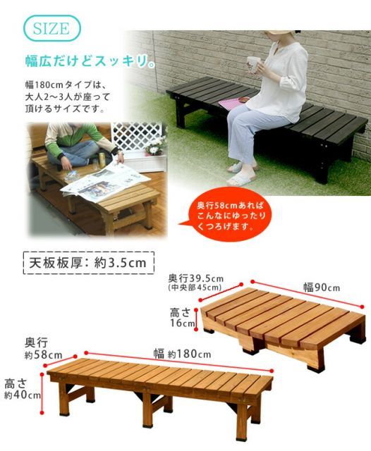 ■サイズデッキ縁台:幅約1800×奥行約580×高さ約400mm