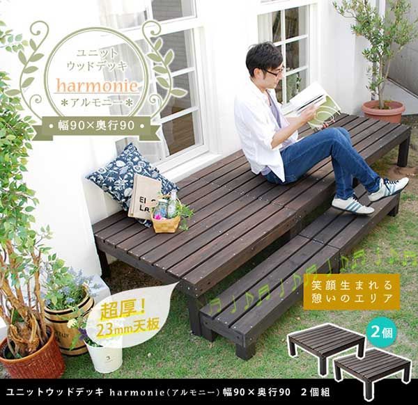 ユニットウッドデッキ harmonie アルモニー 90×90 2個組 ウッドデッキ 簡単 縁側 本格的 DIY 木製 天然木 庭 ベランダ おしゃれ 小型 北欧 ガーデン 屋外 家具 ダークブラウン ECOMMERCETOPSECRET_COM