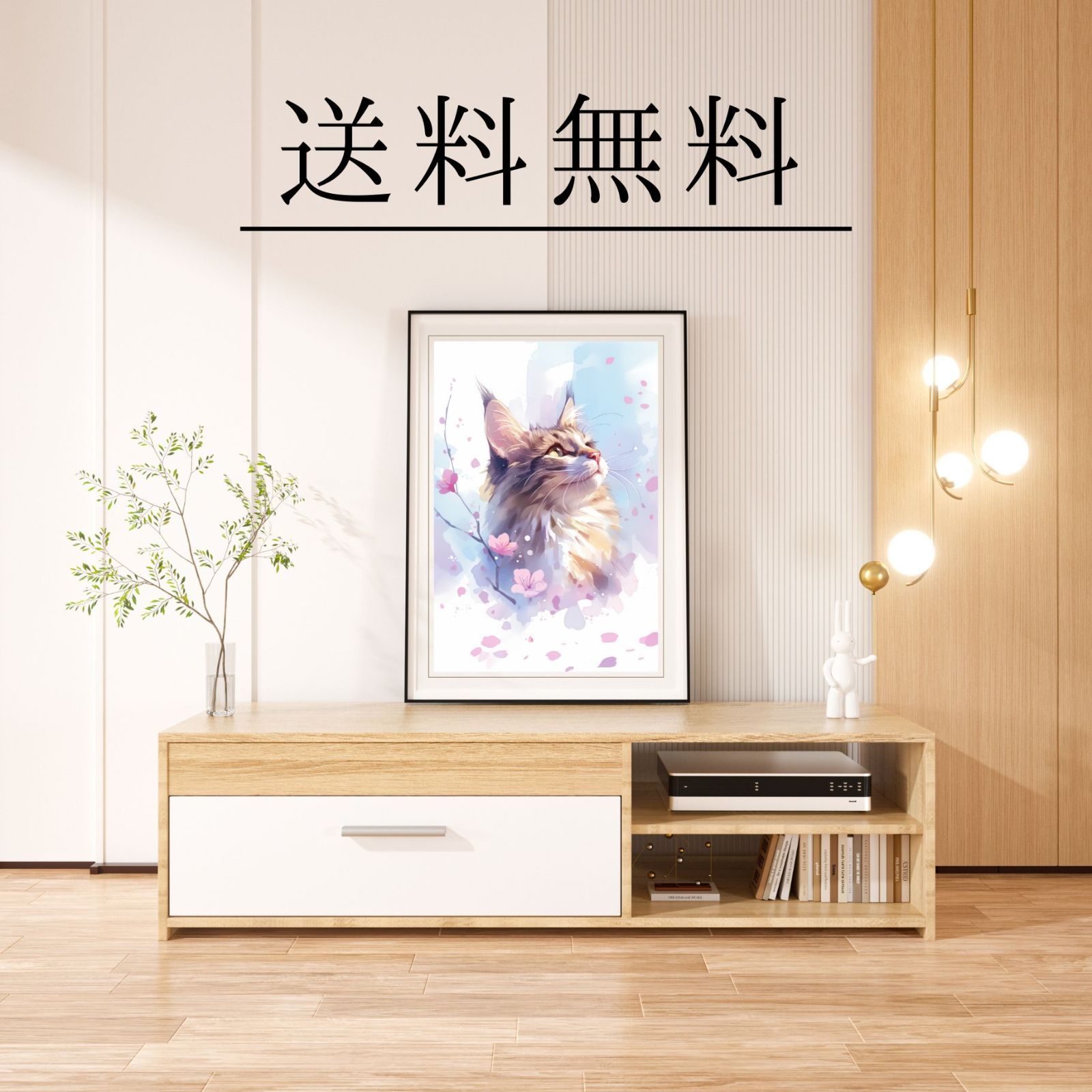 桜猫戯舞 - メインクーン No.3 桜 花見 春 花びら 子猫 猫 キャット ペットロス うちの子 記念日 アートポスター 犬の絵 犬のイラスト ギフト プレゼント ECOMMERCETOPSECRET_COM