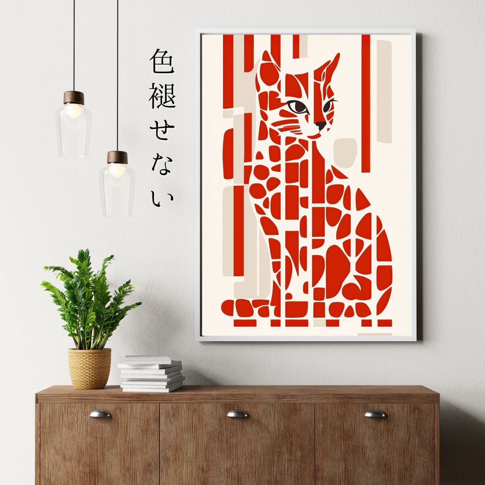 Red Passion - ベンガルキャット No.3 ミニマリスト ミニマリズム シンプル インテリアアート ペットロス 記念日 アートポスター 猫の絵 猫のイラスト ギフト プレゼント ECOMMERCETOPSECRET_COM